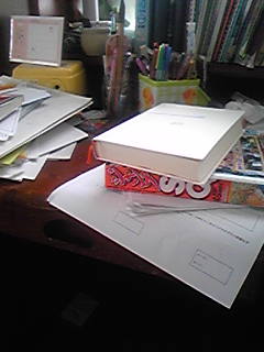 一番下にある白い紙は塾の宿題のプリントですーw(笑)脇にあるプリントの山は・・・・・なんでしょううね?(え)